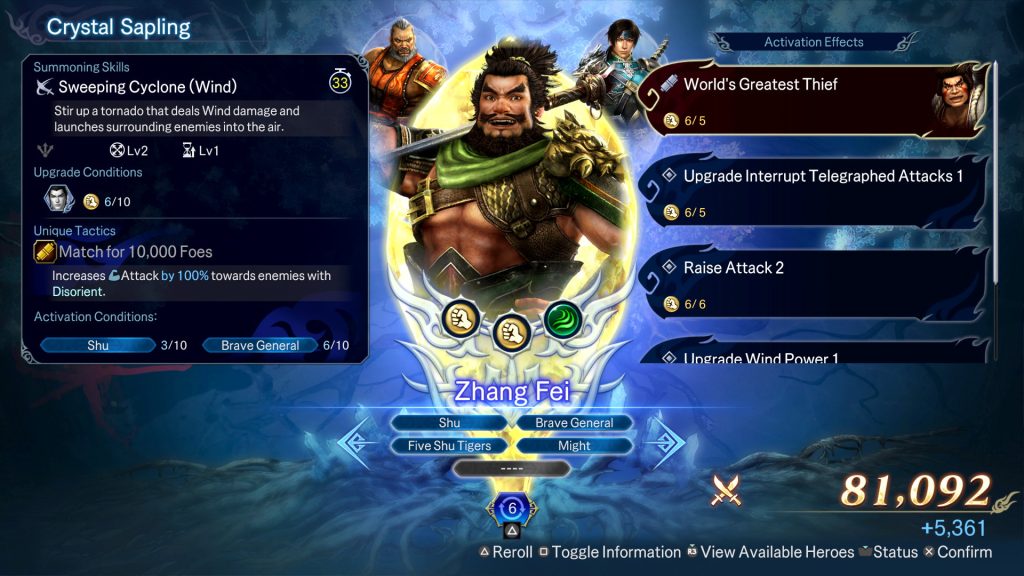 O “twist” de “Warriors: Abyss” é a opção de utilizar outros personagens de musous da Koei Tecmo como “summons”. Ou seja, você vai controlar um personagem, mas ao efetuar um combo específico, pode invocar outros personagens para te ajudarem por tempo limitado com suas habilidades especiais. Outro ponto que o diferencia é o sistema de formações. Cada personagem pode ser posicionado em uma “formação” que garante buffs temporários durante uma run. Quanto maior a afinidade entre os personagens, maior os buffs. Novas formações podem ser liberadas à medida em que você progride nas fases.